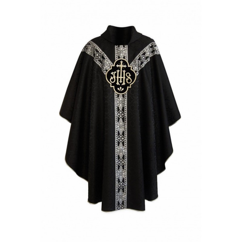 Casula semigótica bordada na frente e atrás com listra de tecido de veludo e fio metalizado de altíssima qualidade.