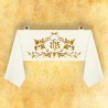Véu umeral litúrgico bordado na parte de trás em alto relevo de altíssima qualidade.