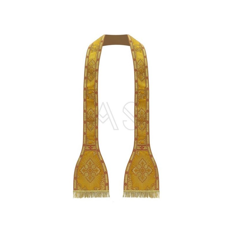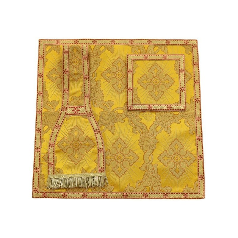 Acompanha uma estola, manípulo, bolsa corporal e véu de cálice.