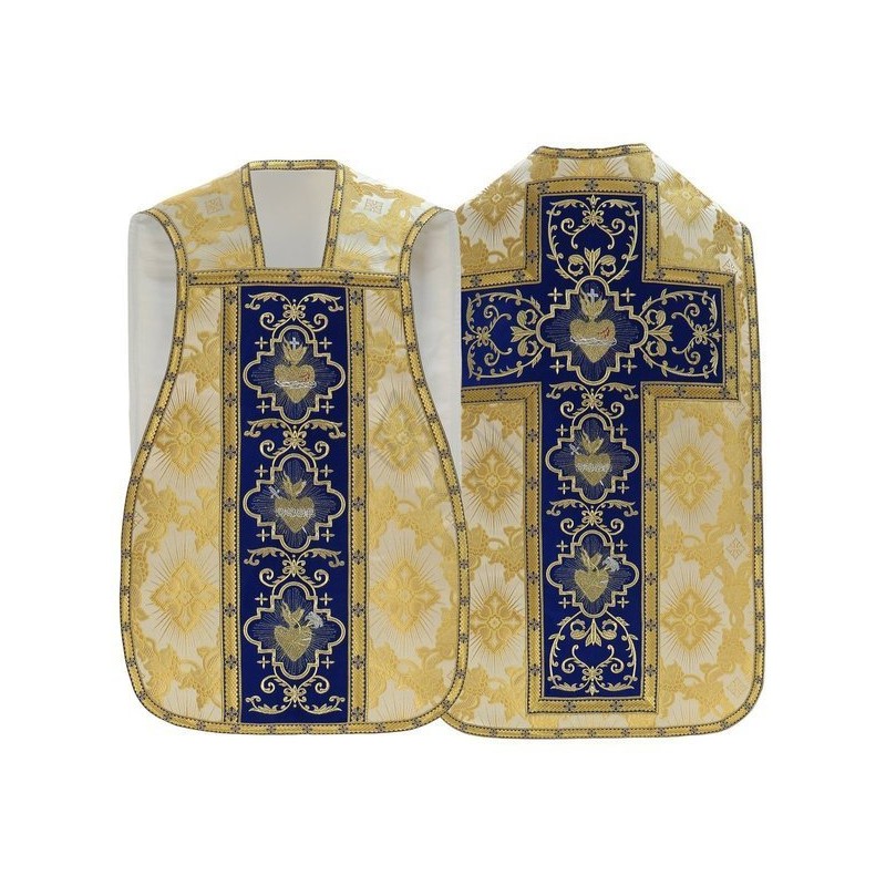 Casula romana Mariana bordada em alto relevo com linha dourada de altíssima qualidade.