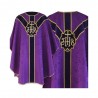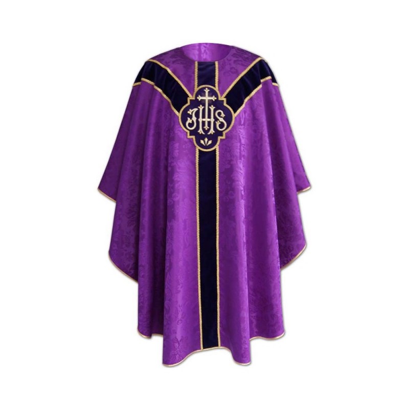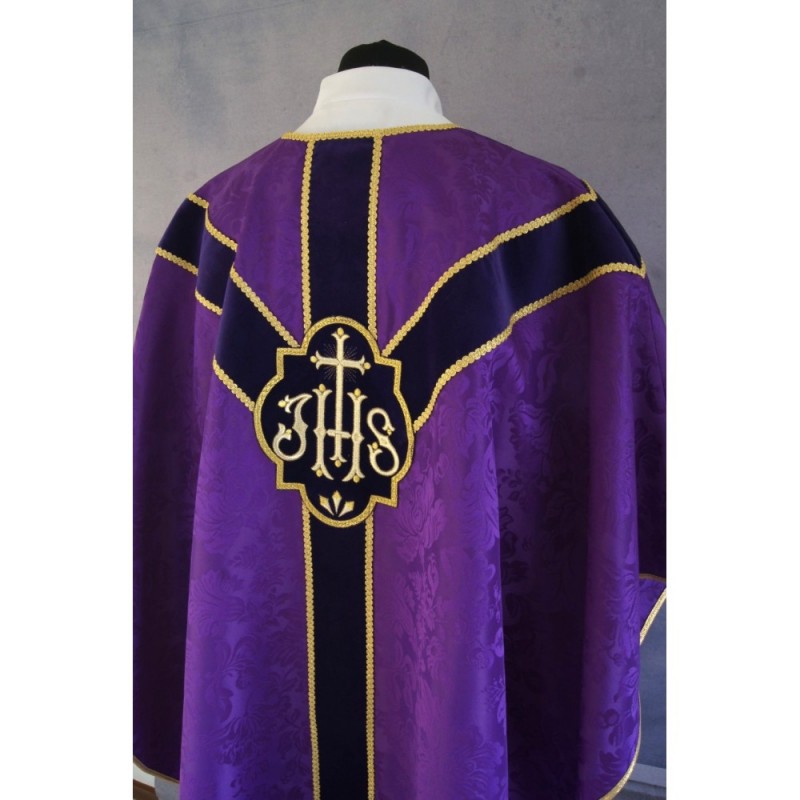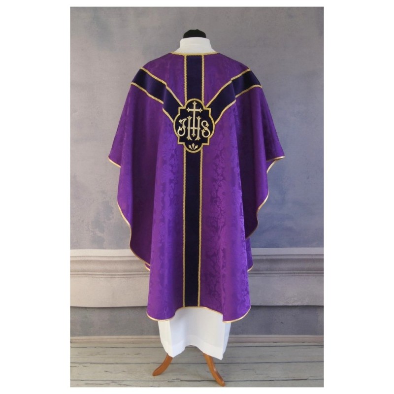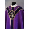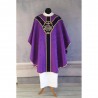Casula semigótica bordada em alto relevo com linha dourada.