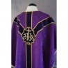 Casula semigótica bordada na frente e atrás com listra de tecido de veludo e fio metalizado de altíssima qualidade.
