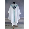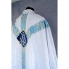 Casula semigótica Mariana bordada em alto relevo com linha dourada de altíssima qualidade.
