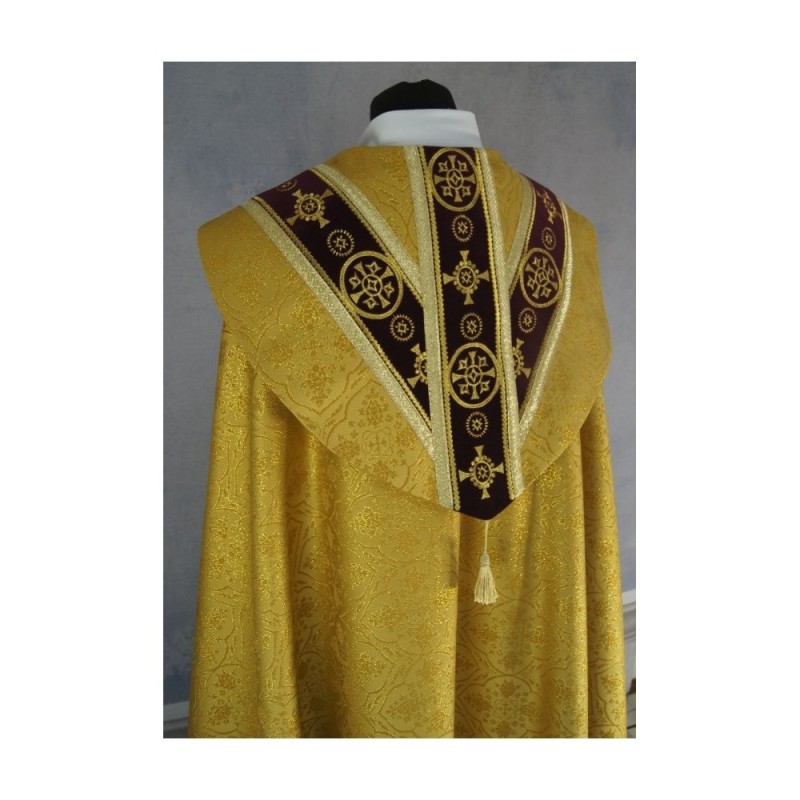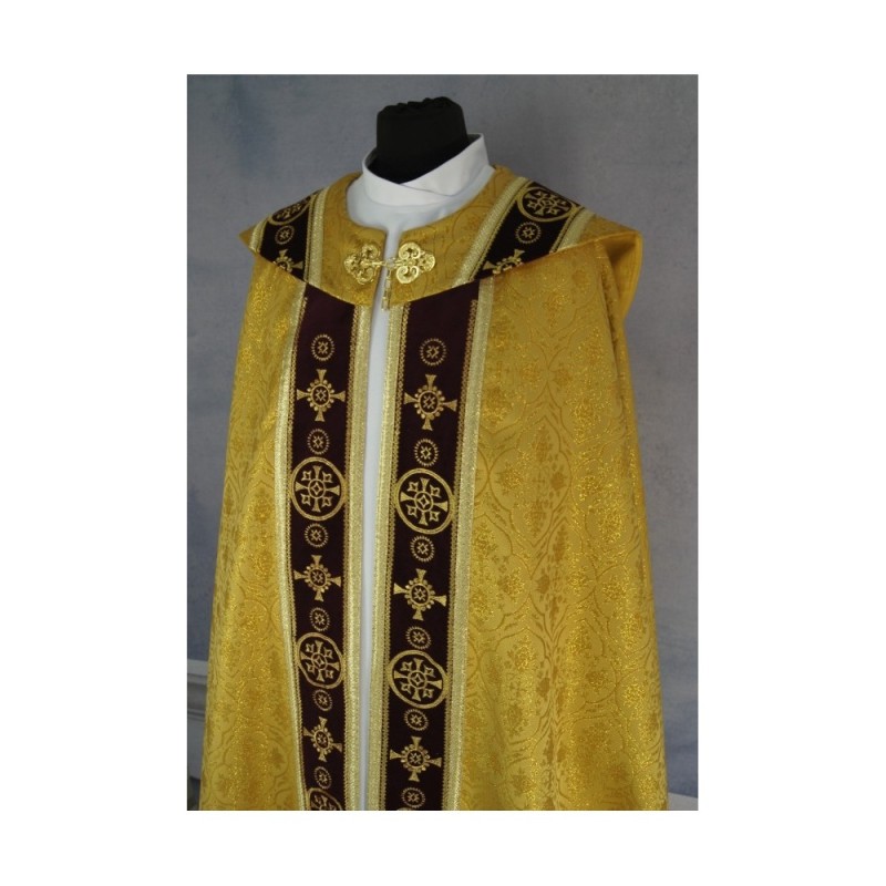Capa semigótica bordada com cruz na frente e atrás com listra de tecido de altíssima qualidade.