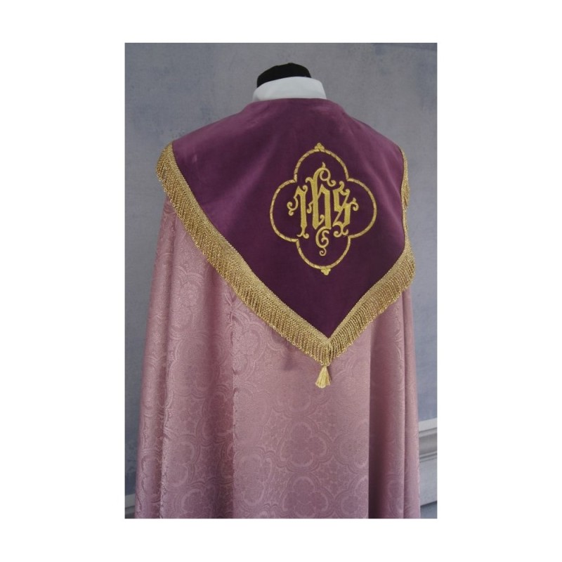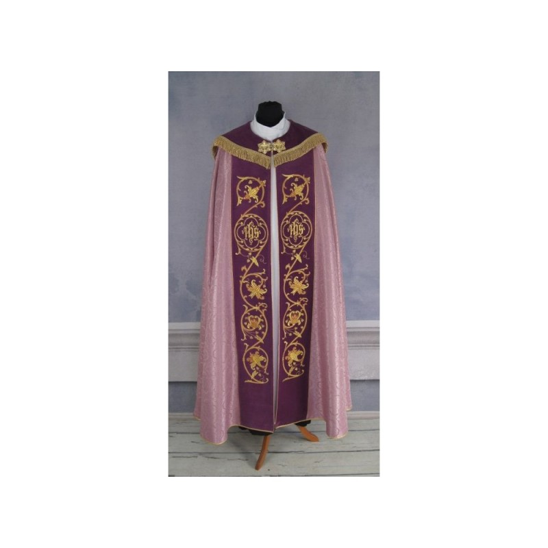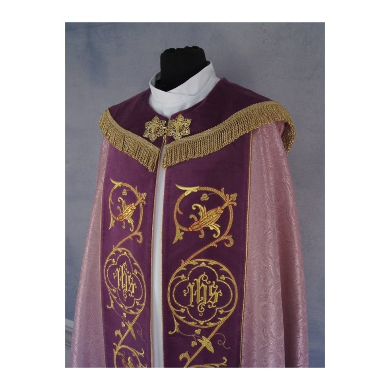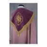 A estola é bordada com cruzes douradas.