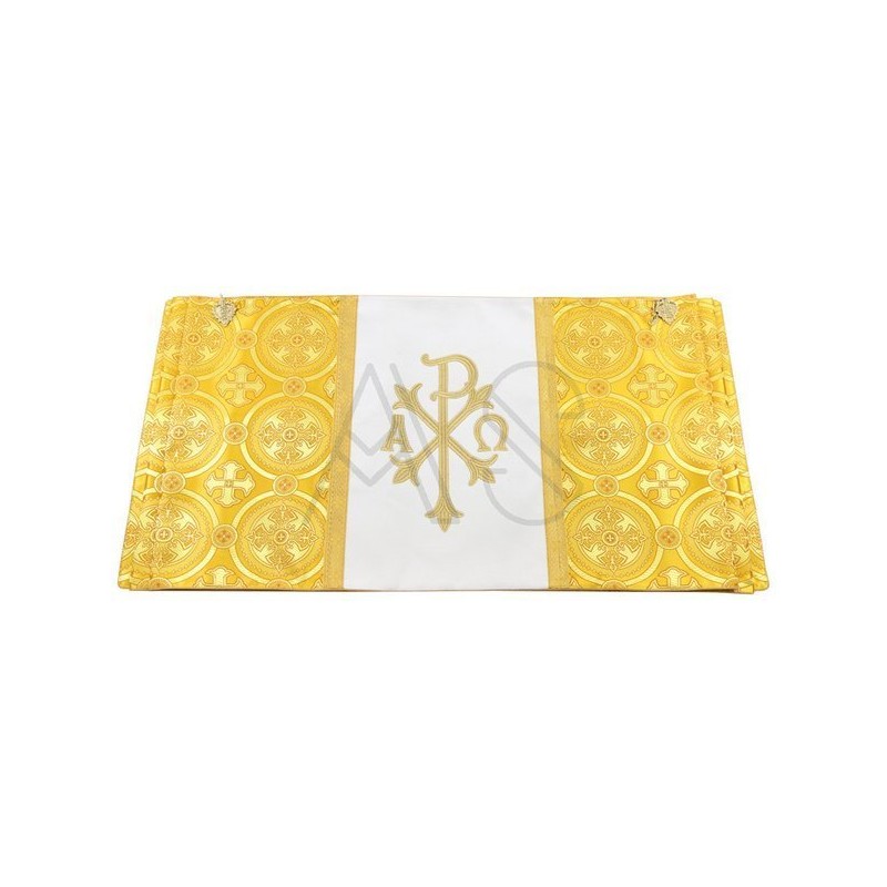 Véu umeral litúrgico bordado na parte de trás em alto relevo de altíssima qualidade.