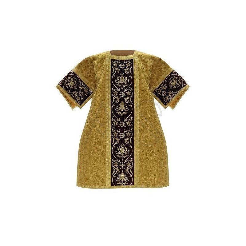 Dalmática romana bordada em alto relevo com linha dourada de altíssima qualidade.