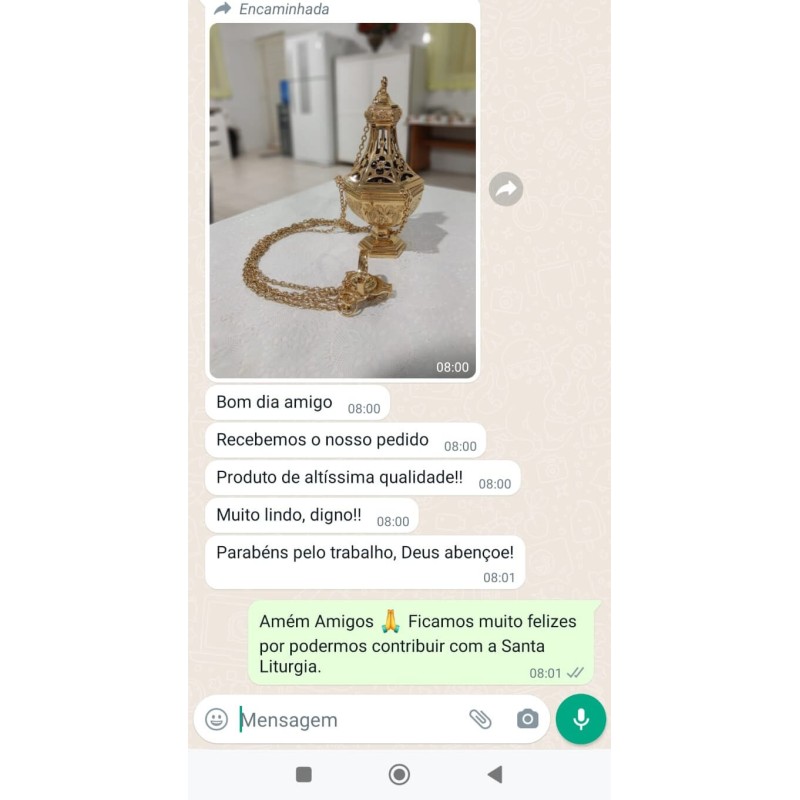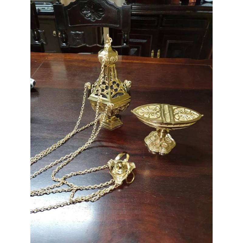 Esse turíbulo gótico de bronze brilhoso, importado, de alta qualidade desempenha um papel significativo na liturgia da Igreja Católica ao simbolizar a adoração, elevar a oração, purificar o ambiente, demonstrar reverência, contribuir para a beleza da liturgia e manter a continuidade histórica da fé. O seu uso cria um ambiente sagrado e proporciona uma experiência litúrgica mais profunda e significativa para os fiéis. Adquira-o na nossa loja e veja os outros modelos.