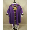 Casula semigótica bordada em alto relevo com listra de tecido em veludo e com fios metalizados de altíssima qualidade.