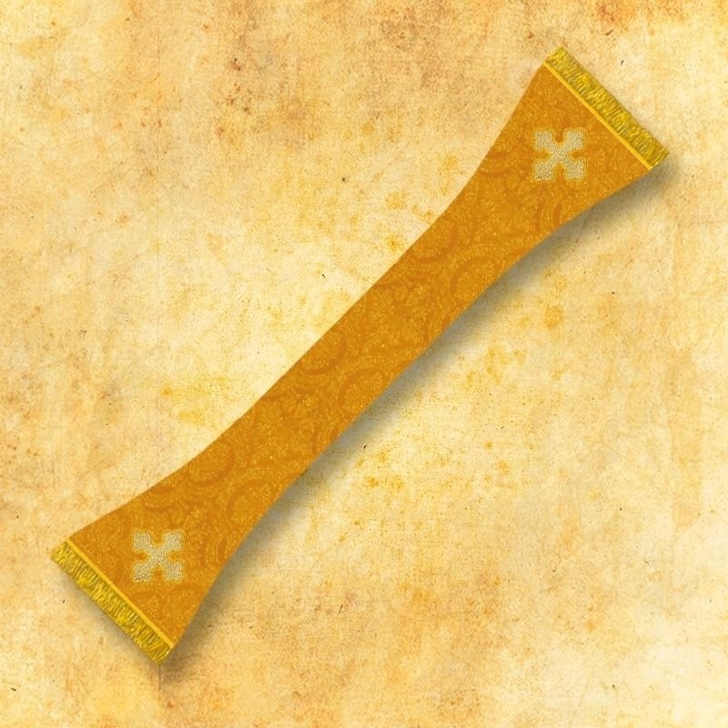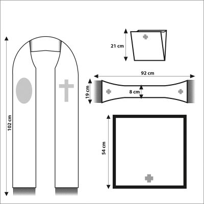 Acompanha uma estola, manípulo, véu para cálice e bolsa corporal.