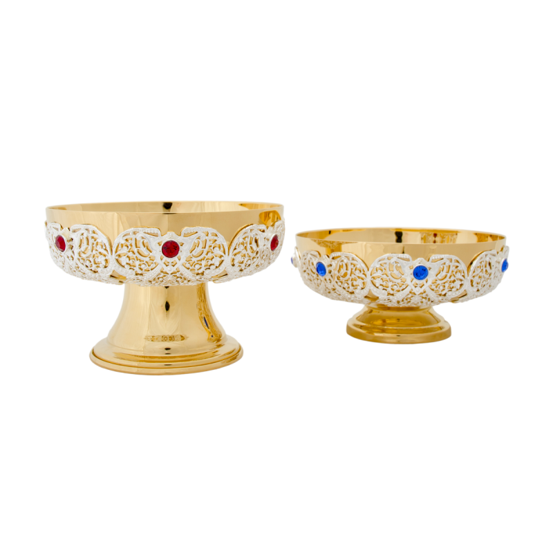 Essa patena dourada, com elementos prateados e pedras de rubis, importada de altíssima qualidade tem o papel fundamental na preparação e na apresentação dos elementos sagrados da Eucaristia. É usada com reverência e cuidado para garantir que as hóstias sejam tratadas de forma adequada e respeitosa durante a celebração da Missa. Esse símbolo visível da presença de Cristo na Eucaristia e da comunhão entre os fiéis e Deus você encontra aqui na nossa loja. Adquira-a agora e veja os outros modelos.
