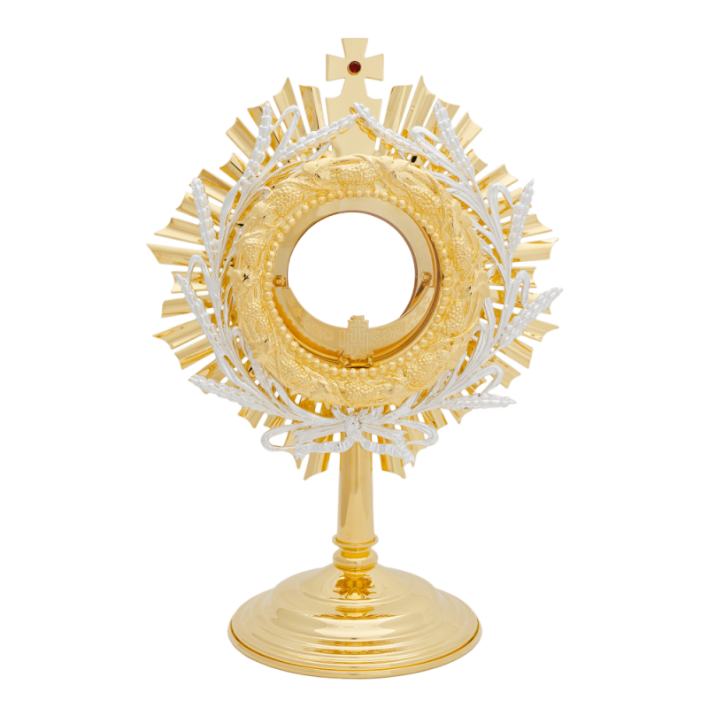 Ostensório deslumbrante, com pedras de rubis, produto importado, de altíssima qualidade, com ornamentação prateada que realçam a sua beleza. Que acrescenta sofisticação e valor ao produto. Ideal para celebrações importantes e para homenagear o Santíssimo Sacramento. Adquira já o seu e proporcione um momento de adoração profundo. Adquira-o agora na nossa loja e veja os outros modelos.