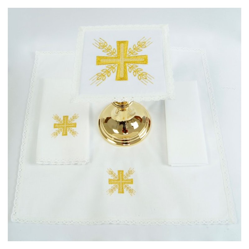 DIMENSÕES: PALA: 18CM X 18CM; BOLSA CORPORAL: 45CM X 45CM; VÉU DE CALICE: 45CM X 35CM