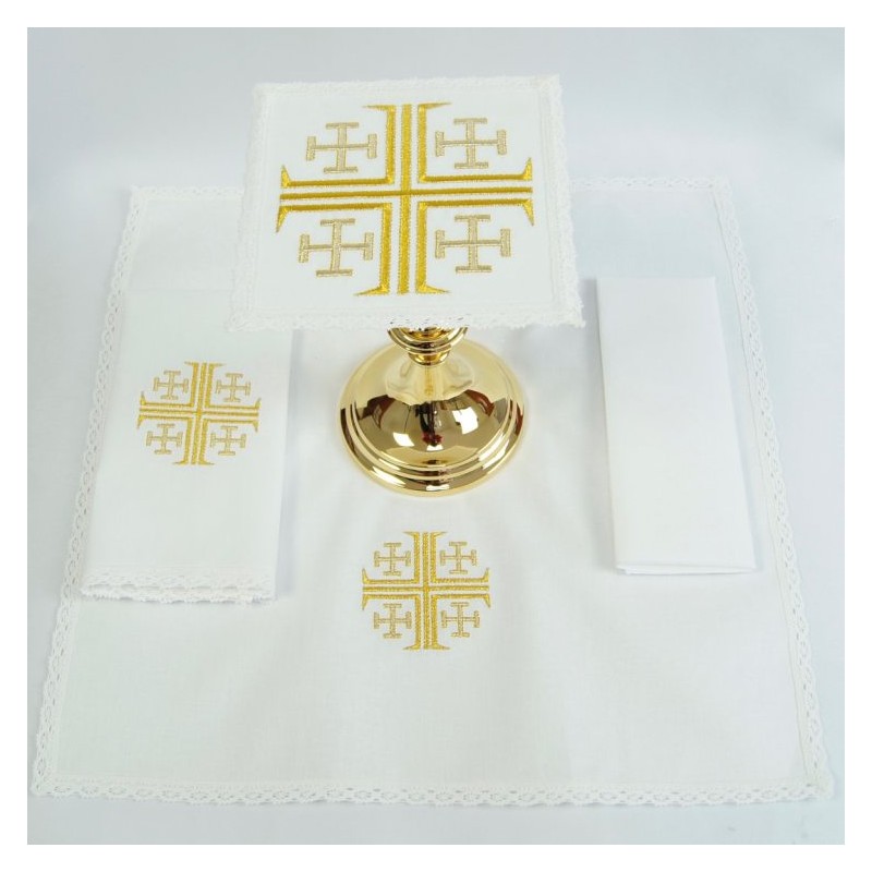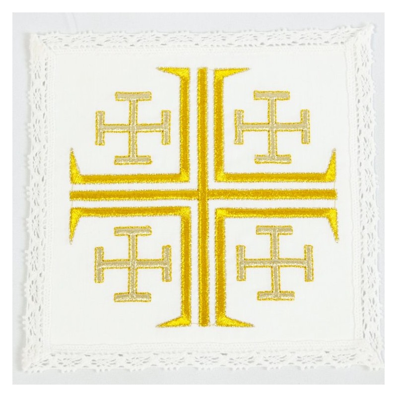 DIMENSÕES: PALA: 18CM X 18CM; BOLSA CORPORAL: 45CM X 45CM; VÉU DE CALICE: 45CM X 35CM