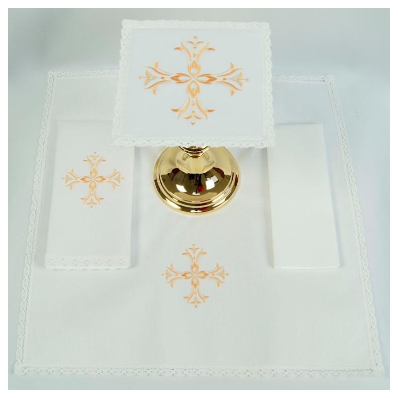 DIMENSÕES: PALA: 18CM X 18CM; BOLSA CORPORAL: 45CM X 45CM; VÉU DE CALICE: 45CM X 35CM