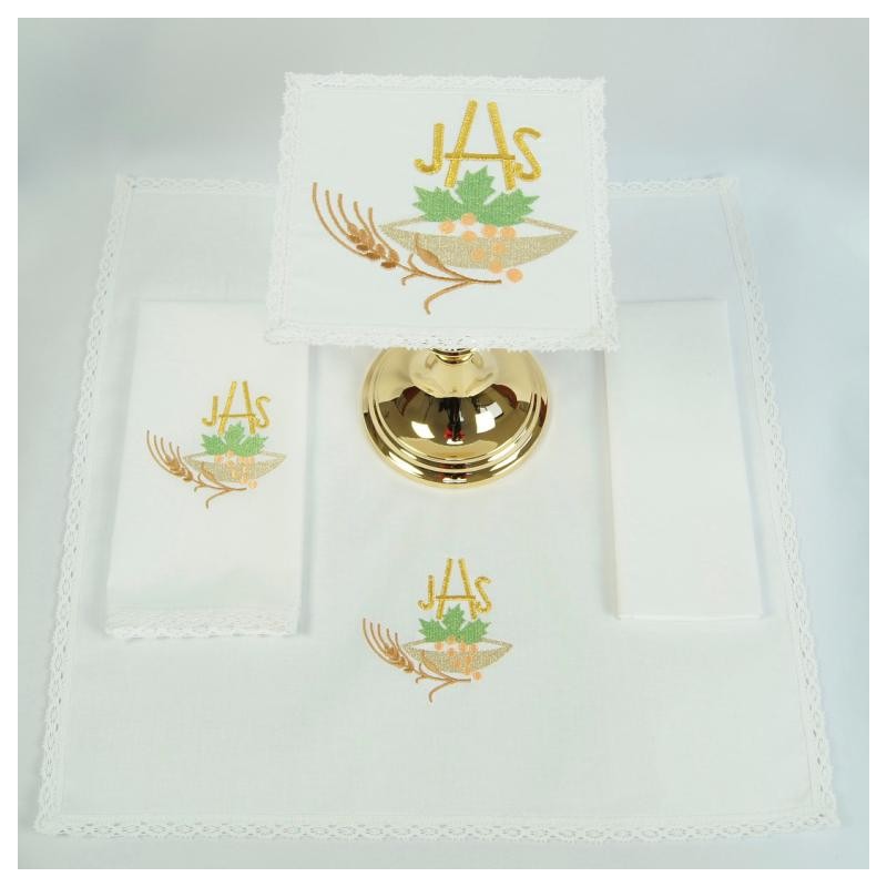 DIMENSÕES: PALA: 18CM X 18CM; BOLSA CORPORAL: 45CM X 45CM; VÉU DE CALICE: 45CM X 35CM