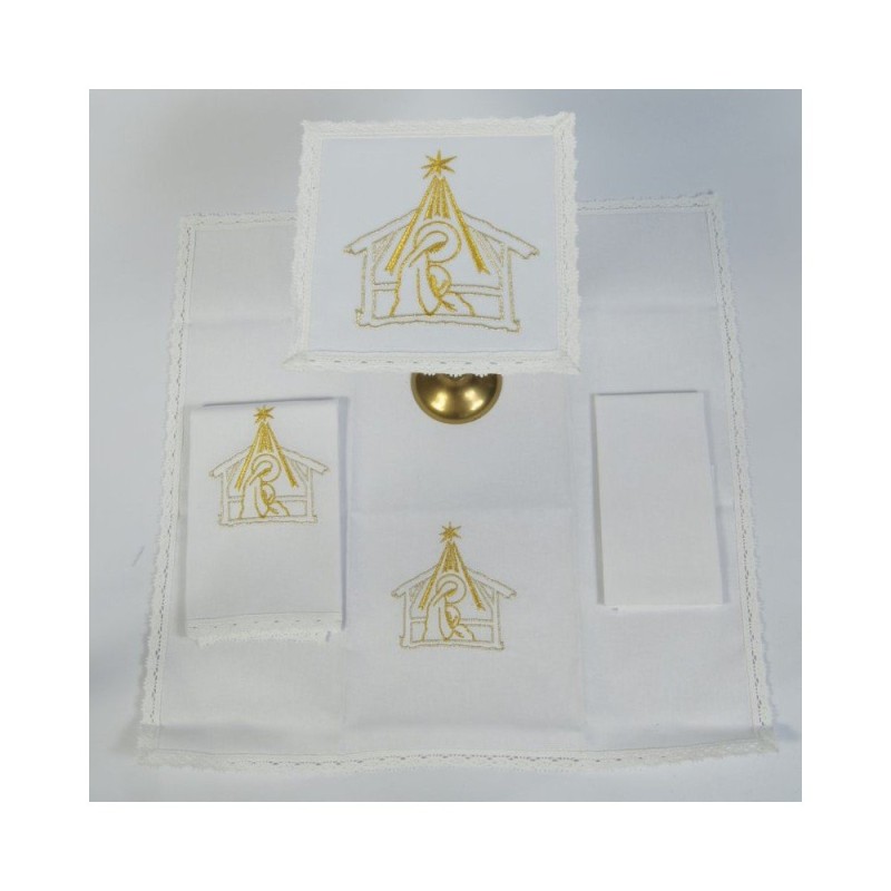 DIMENSÕES: PALA: 18CM X 18CM; BOLSA CORPORAL: 45CM X 45CM; VÉU DE CALICE: 45CM X 35CM