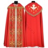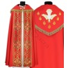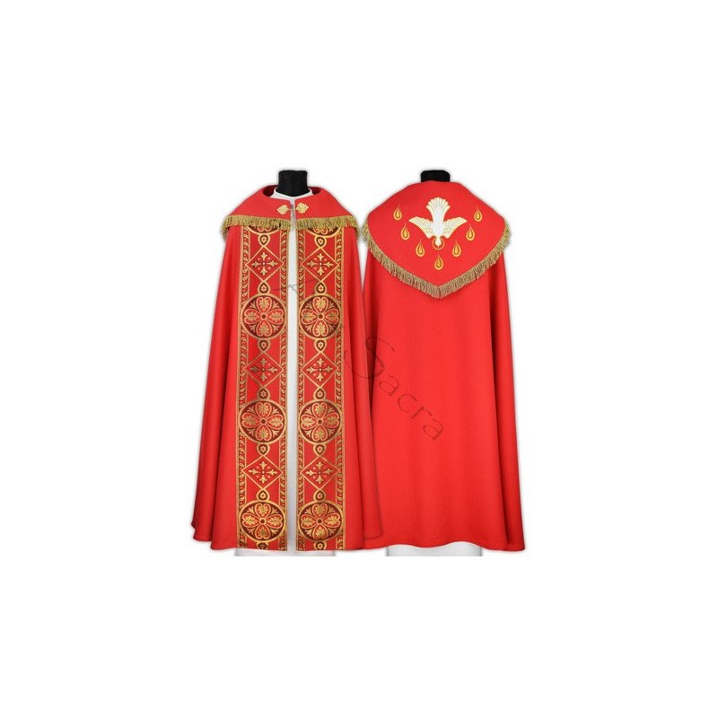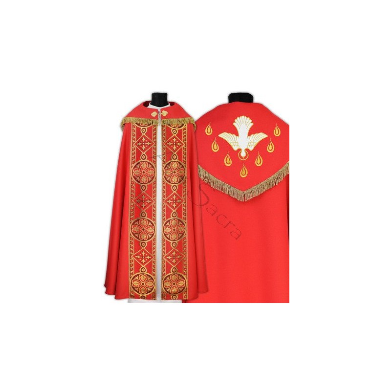 No capuz tem a imagem do Espírito Santo e uma franja com fio metalizado dourado.