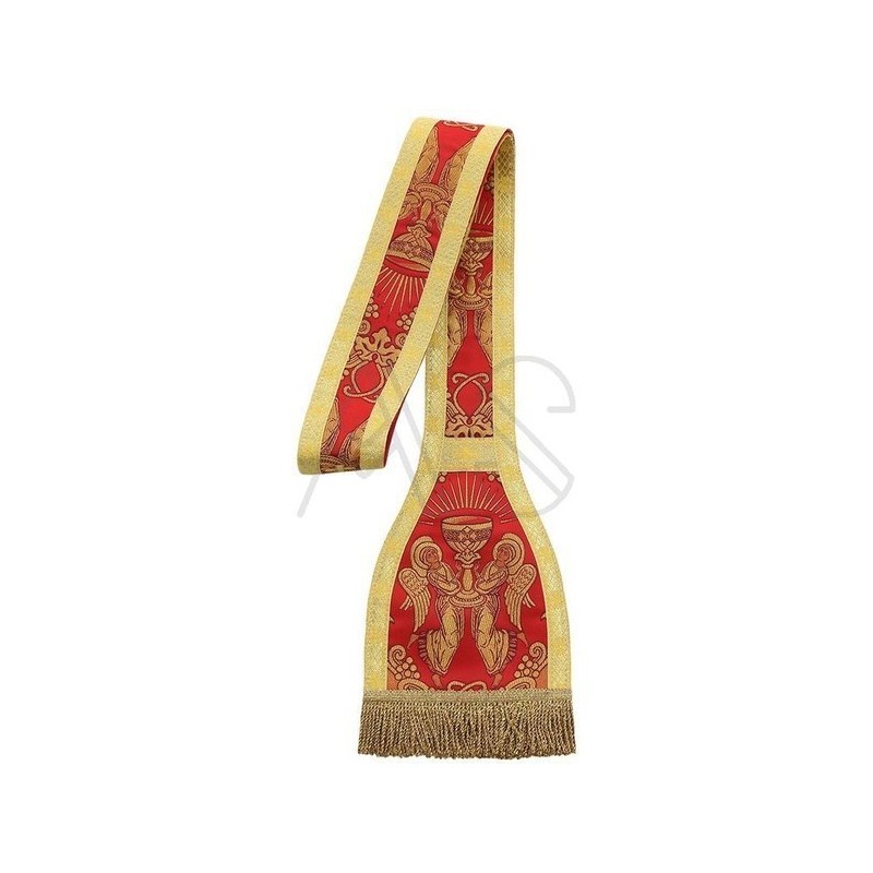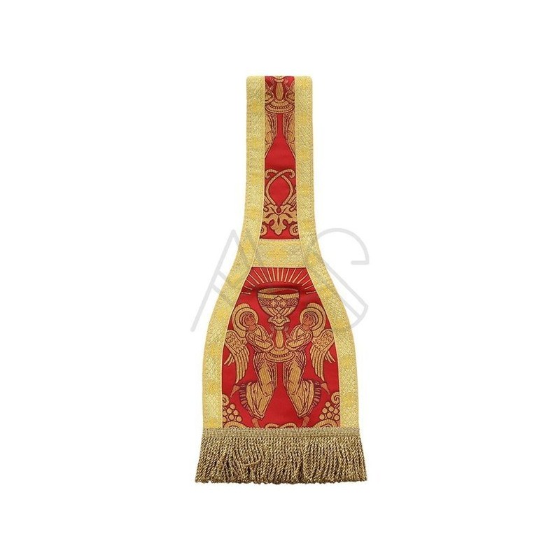 Acompanha uma estola, manípulo, bolsa corporal e véu de cálice.
