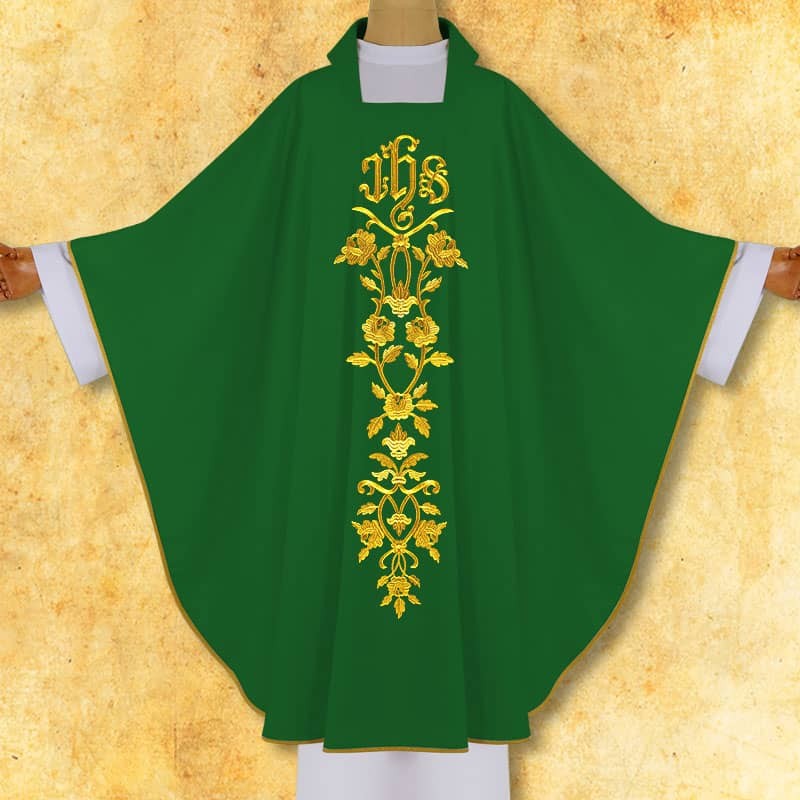 Casula gótica bordada na frente e atrás com fio dourado de altíssima qualidade.