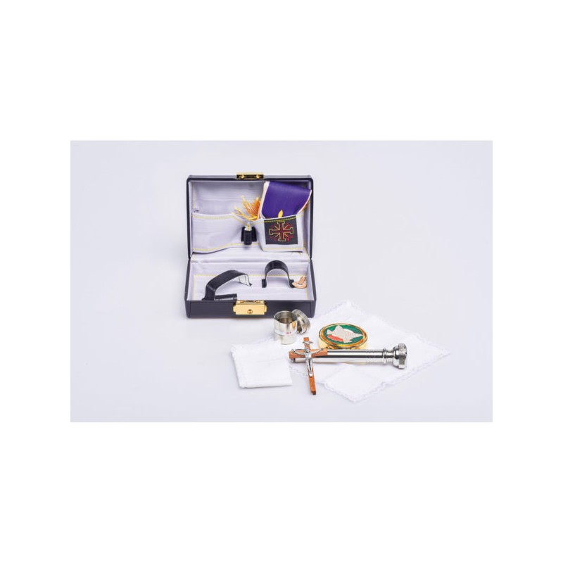 Estojo viático com equipamentos litúrgicos para visita aos enfermos. Produto italiano de altíssima qualidade.
