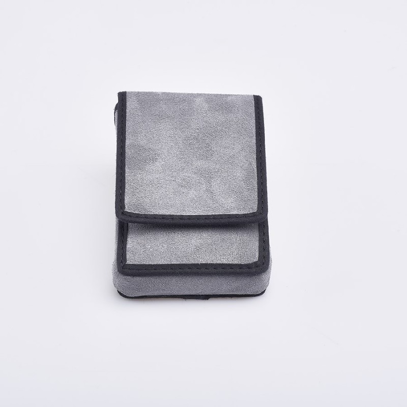 Estojo macio tipo carteira fechada com zíper.