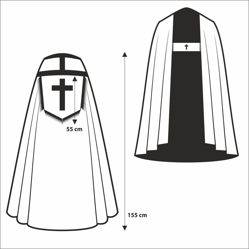 Veja a imagem abaixo de como medir sua capa romana pela parte de trás do pescoço até a barra.