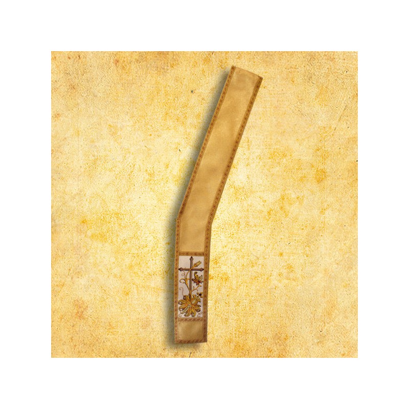 Estola diaconal bordada com fio dourado, e decorada à mão com pedras de altíssima qualidade.