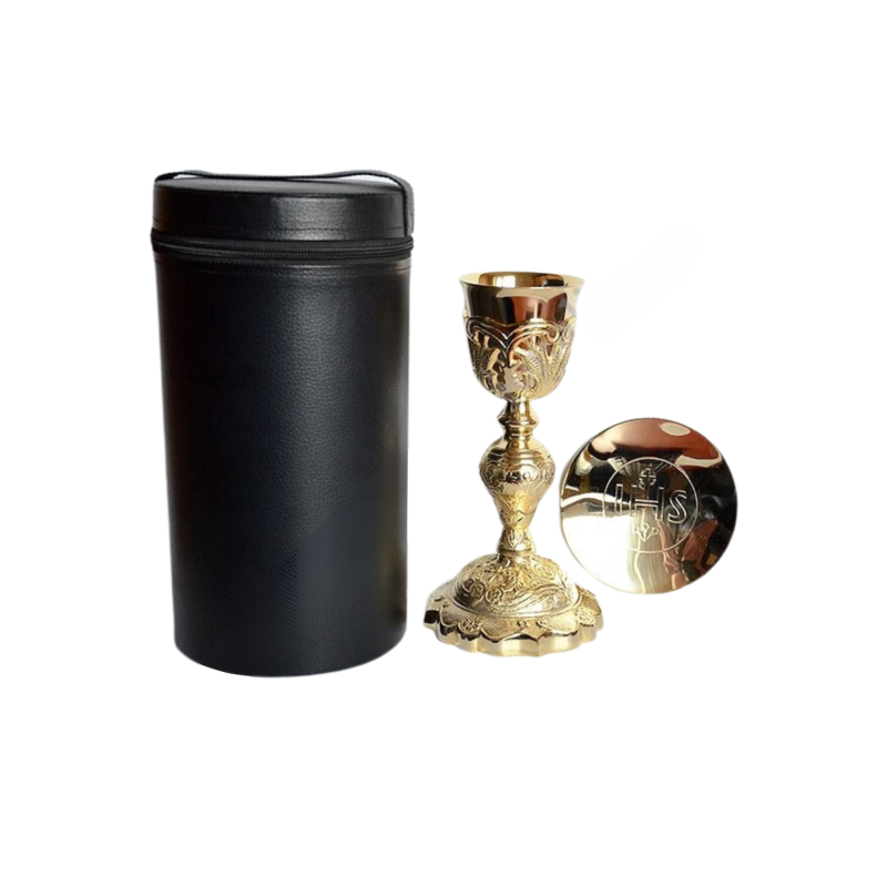 Esse estojo de couro ecológico para cálice e patena, produto italiano de altíssima qualidade, é de grande importância para fornecer organização, proteção e transporte seguro para esses objetos litúrgicos. Ao adquirir esse produto demonstra o seu cuidado pastoral pelo respeito no ritual da celebração eucarística. Veja os outros modelos.