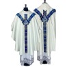 Casula semigótica Mariana bordada em alto relevo com linha dourada de altíssima qualidade.