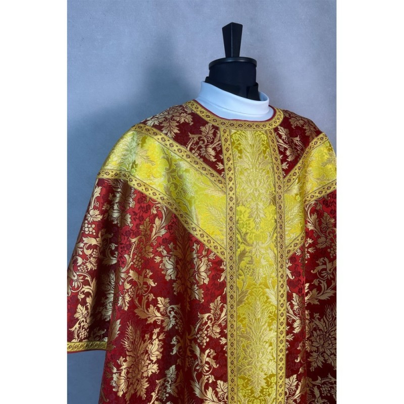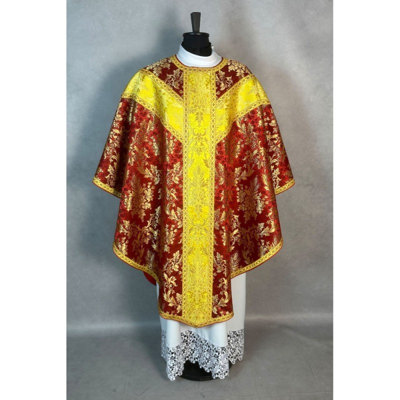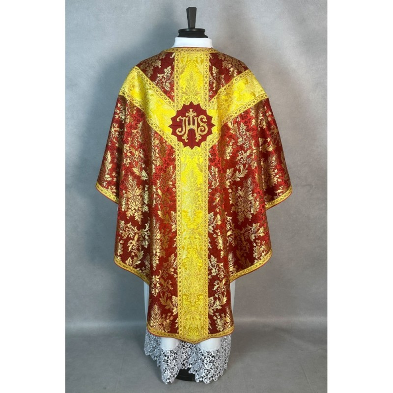 Casula semigótica no tecido Adamascado com bordado de altíssima qualidade.