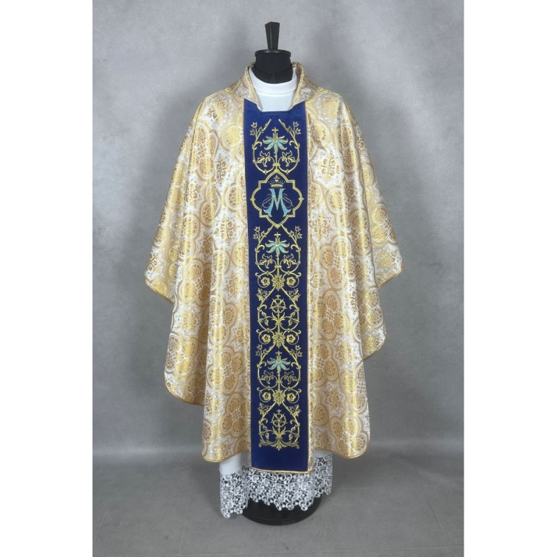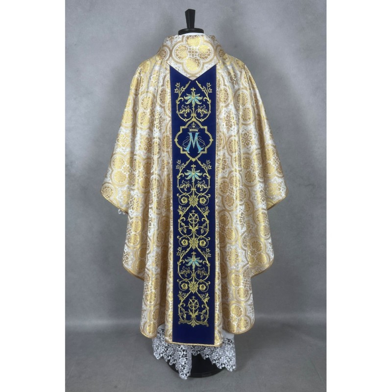 Casula gótica Mariana bordada com fios metalizados no tecido de veludo.