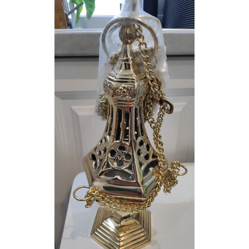 Turíbulo feito de chapa metálica e fundição de latão. Produto italiano de altíssima qualidade.