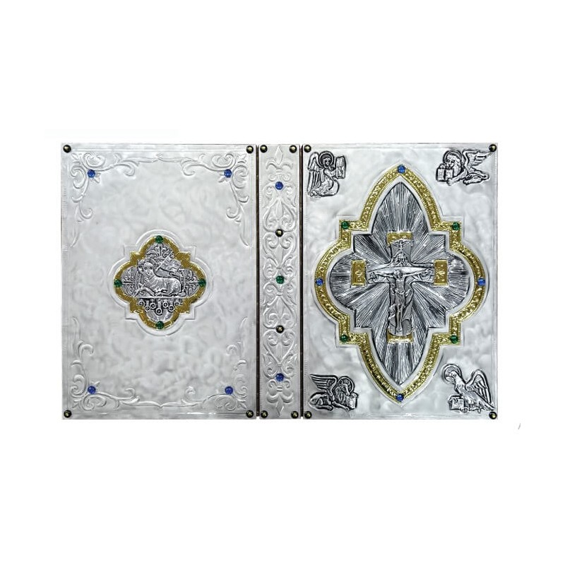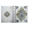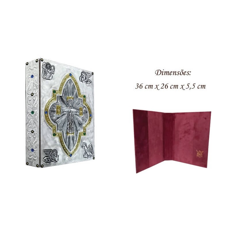 Capa com imagem Trindade. Feito em Alumínio, com alto relevo. Pintura em tom de bronze. Interior forrado com veludo.