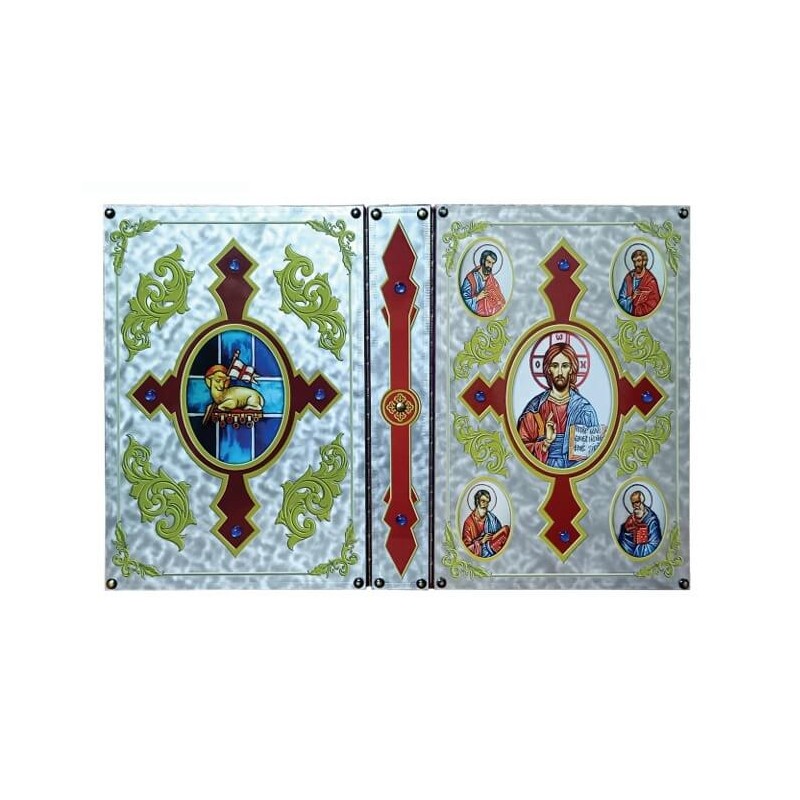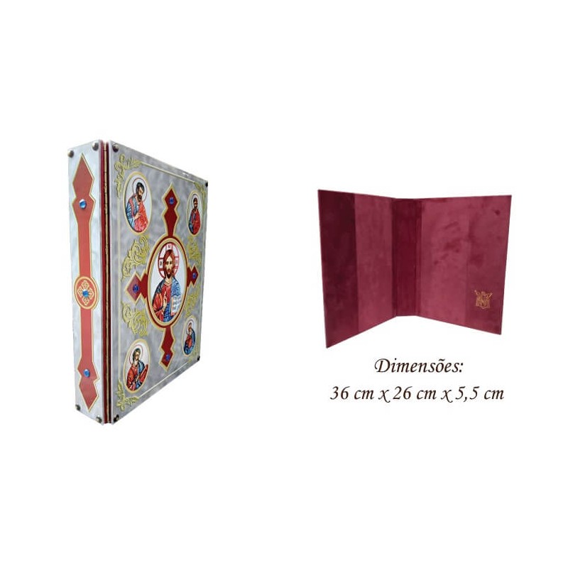 Capa com imagem Evangelion. Feito em Alumínio, com baixo relevo. Pintura em tom de bronze. Interior forrado com veludo.