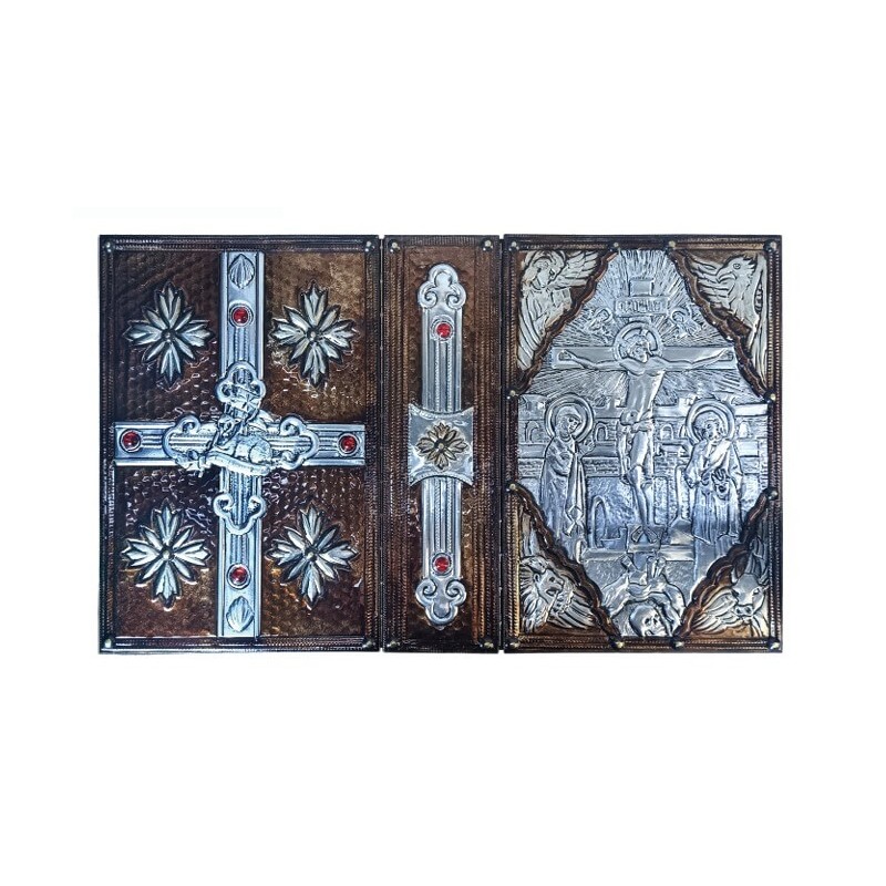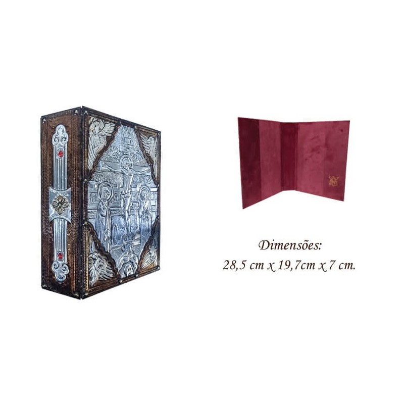 Capa com imagem O Caminho. Feito em Alumínio, com alto relevo. Pintura em tom de bronze. Interior forrado com veludo.
