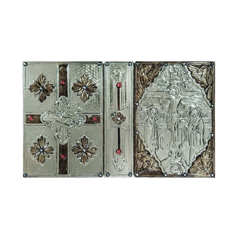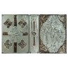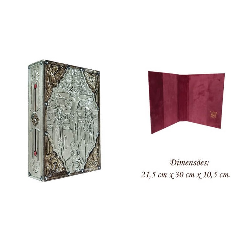 Capa com imagem Caminho Dourada. Feito em Alumínio, com alto relevo. Pintura em tom de bronze. Interior forrado com veludo.