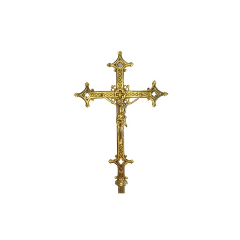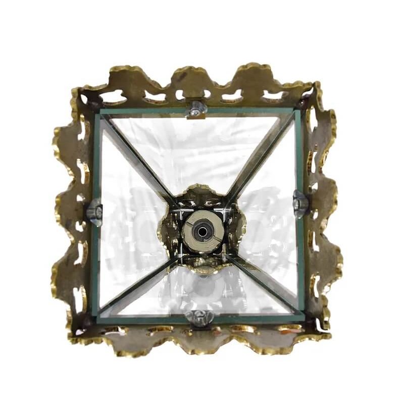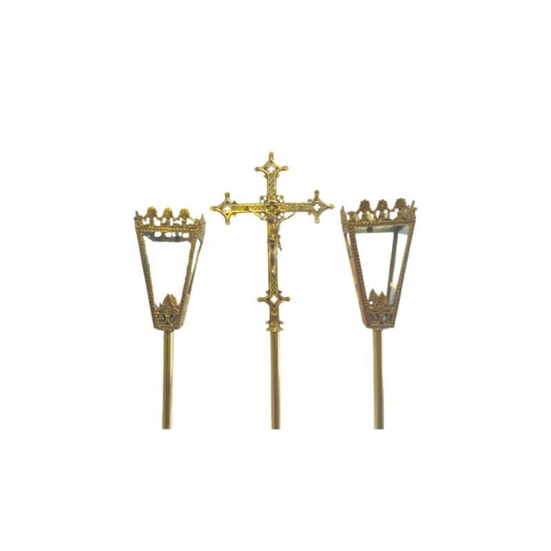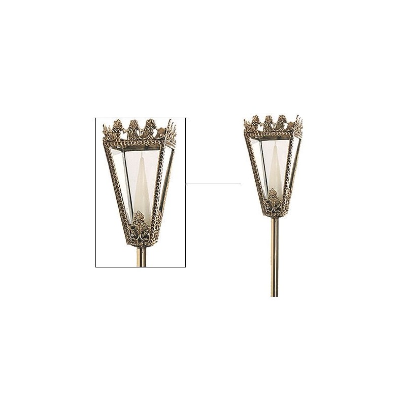 Tocheiro processional fabricado em bronze com vidro para proteção da vela.