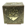 Sacrário feito de madeira de altíssima qualidade. Forrado manualmente em metal cinzelado. Parte interna de metal.