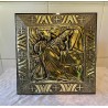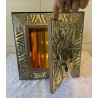 Material: Madeira com revestimento metálico cinzelado artesanalmente. Acabamento interno e externo em metal.