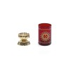 Tubo de vidro em vermelho curto, decorado com impressão IHS dourada.