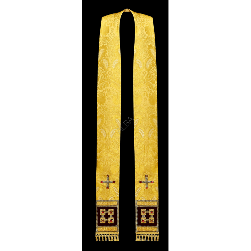 Estola tradicional feita a mão decorada com fitas e pedras de altíssima qualidade.