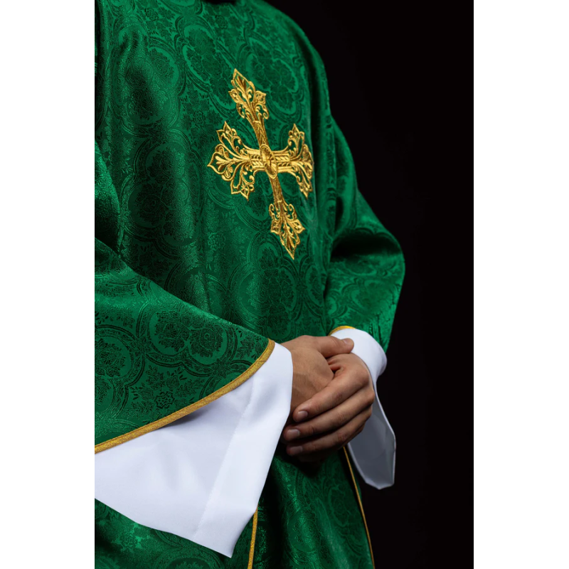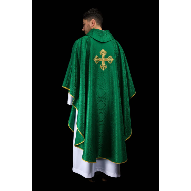 Casula gótica com bordado na frente e atrás e acabamento em cetim.