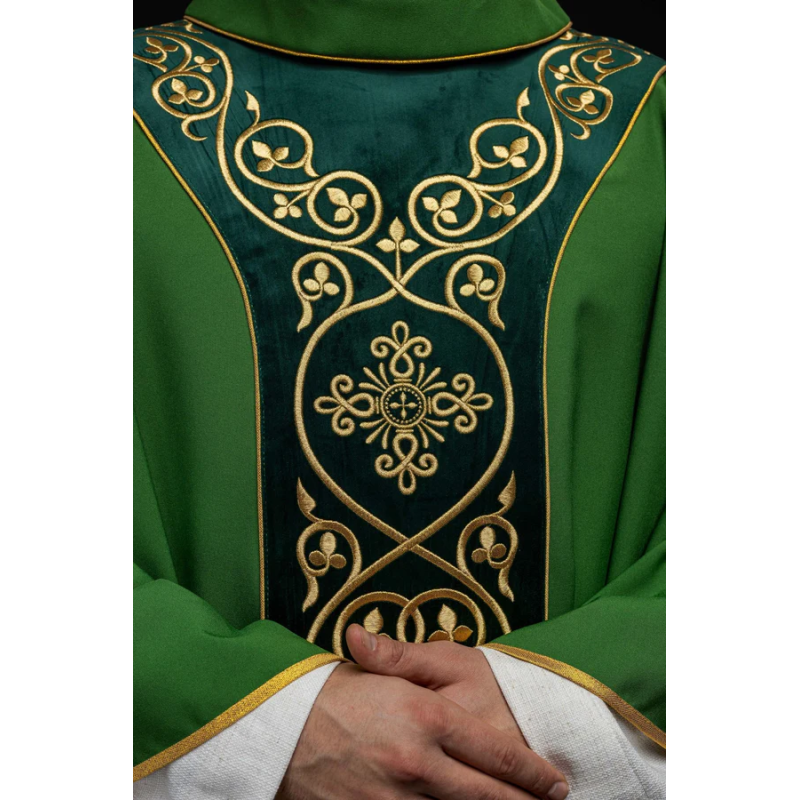 Casula gótica com bordado na frente e atrás. com galão bordado no veludo.