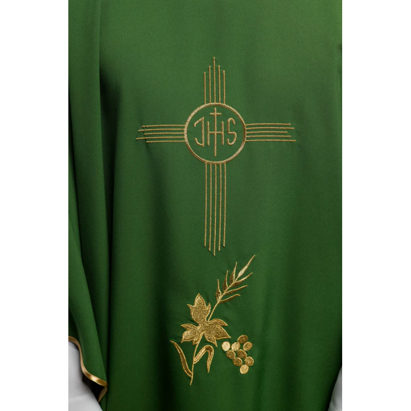 Casula gótica com bordado na frente e atrás. Acabamento em cetim dourado.