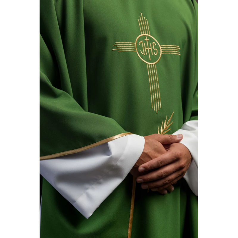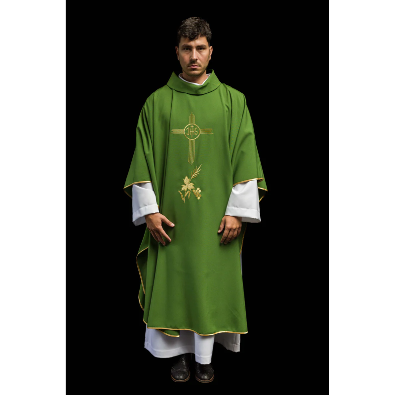 Casula gótica com bordado na frente e atrás e acabamento em cetim.