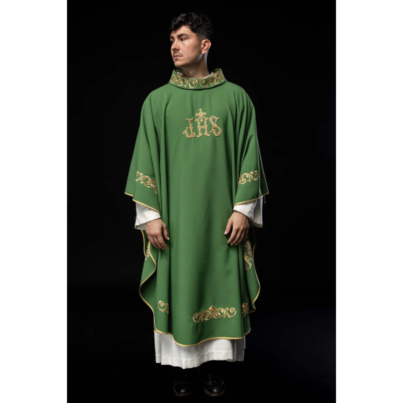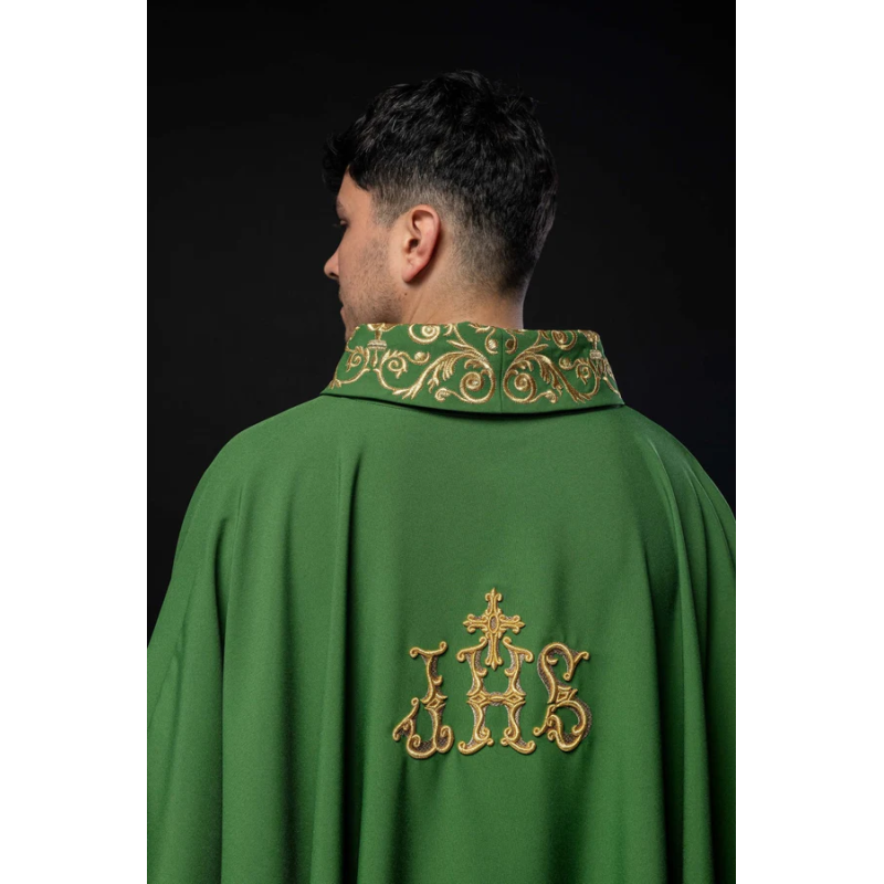 Casula gótica com bordado na frente e atrás.