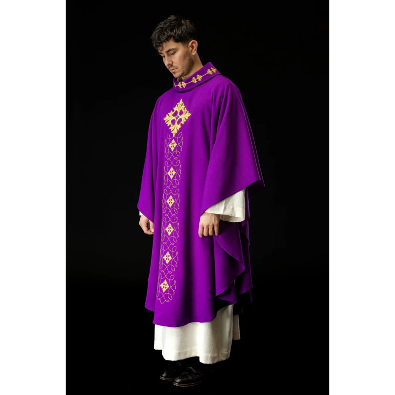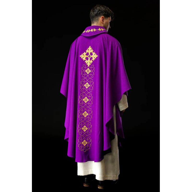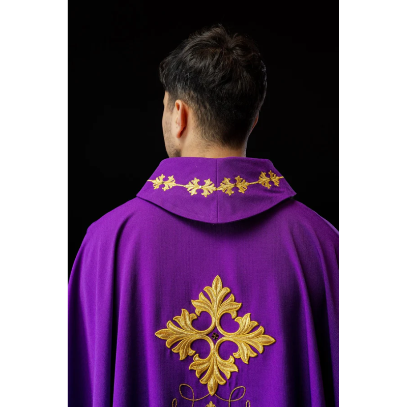 Casula gótica com bordado na frente e atrás. Acabamento em fios de cetim.