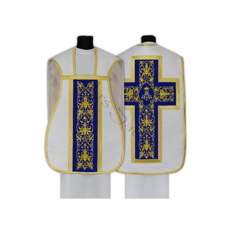 Casula romana Mariana bordada em alto relevo com linha dourada de altíssima qualidade.