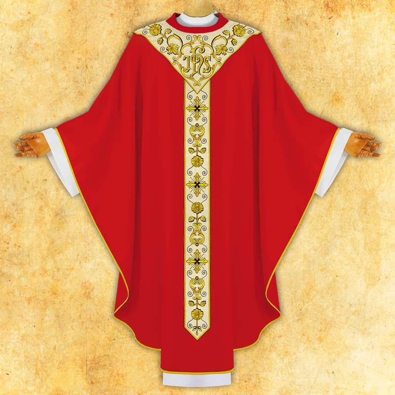 Casula gótica bordada na frente e nas costas de altíssima qualidade.